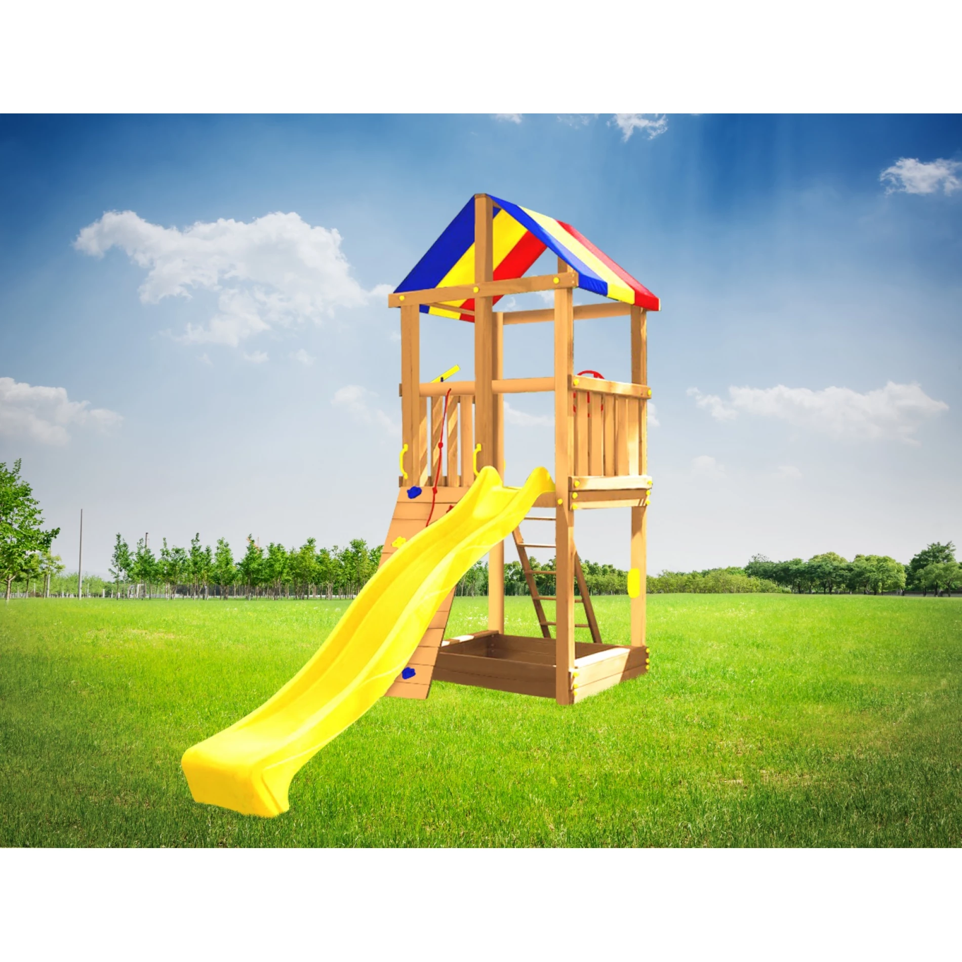 За такую цену просто мечта, а не площадка! А качество просто топ. Мы выбирали долго, тщательно. Остановились на площадке Пикник NewCastle с рукоходом. Дети подвижные, для них прям отличный вариант: на рукоходе полазить, с горки прокатиться. Когда устали - можно просто в башенке под крышей посидеть, от солнца отлично спасает тентовая крыша.